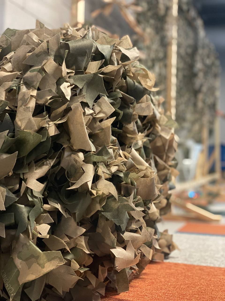 Проаналізувавши всі можливі варіанти, ми підібрали відмінну синтетичну тканину з візерунком, який найбільше підходить під умови нашої країни. Наша команда створила комфортні умови плетіння сіток для волонтерів та волонтерок, також ми постійно аналізуємо місцевість і запити бійців та підбираємо колір тканини залежно від потреби.